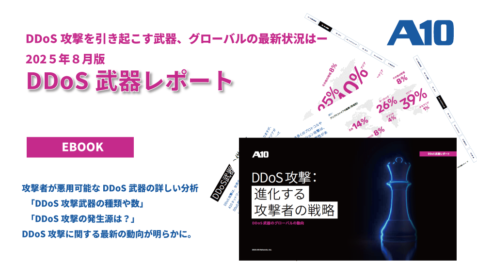 A10 セキュリティ リサーチ チームが収集したデータを要約した本レポートでは、DDoS 武器の発生源や種類、その他の特徴に関するインサイトとともに、絶えず変化する世界のDDoS武器のトレンドを解説します。